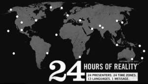 Al Gore will present information via the broadcast once per hour over the 24-hour event. With 24 presenters, in 24-time zones, and 13 languages all sharing 1 message, this worldwide event will broadcast live online.